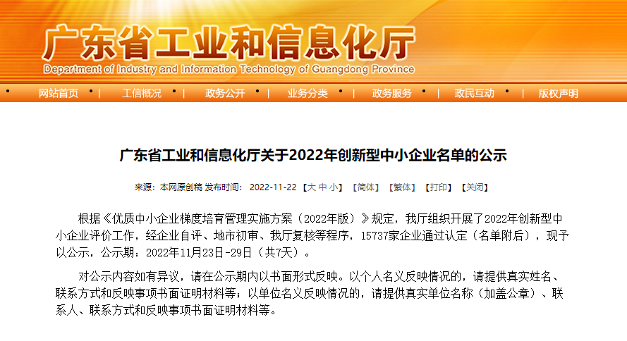 近日,据广东省工业和信息化厅关于2022年创新型中小企业名单公示,经企业自评、地市初审、省厅复核等程序,广东贝博新能源科技有限公司(序号11624)成功入选“2022年创新型中小企业”公示名单,是今年贝博空气能喜获2021年度深圳市“专精特新”中小企业之后的又一殊荣!