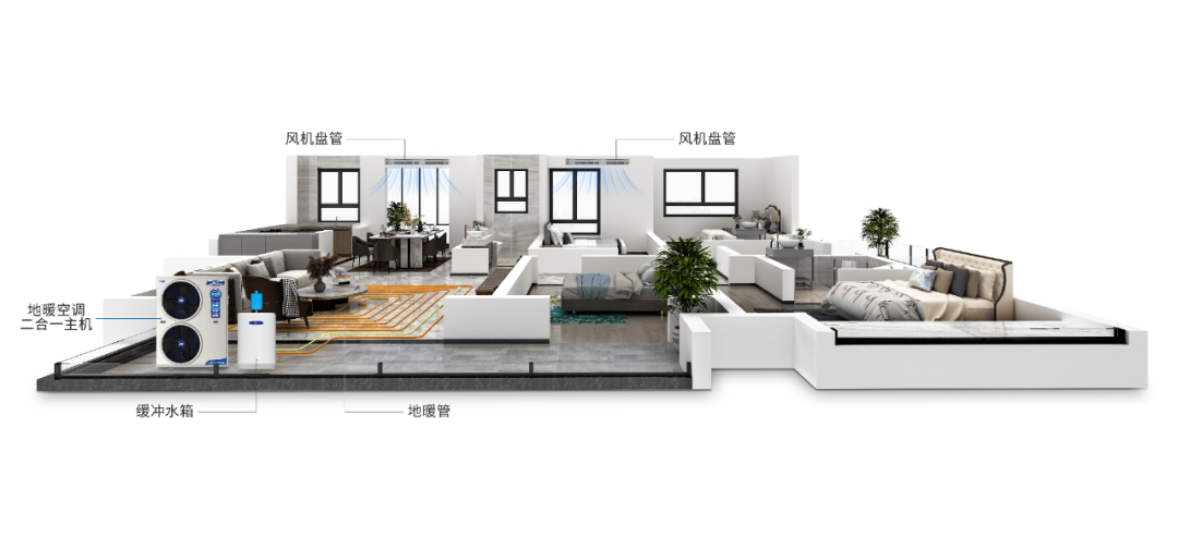 贝博空气能采暖主机实用性强,可以搭配暖气片、地暖管、风机盘管等采暖末端配套使用,还具备一机两用功能,可以满足用户冷暖需求。